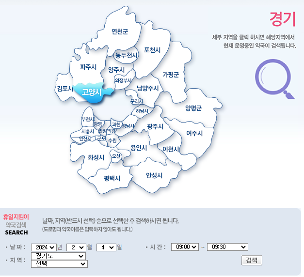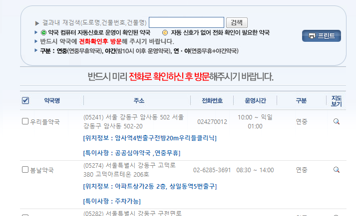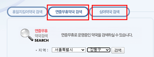 휴일 문 여는 약국 찾기- 휴일지킴이약국 사이트